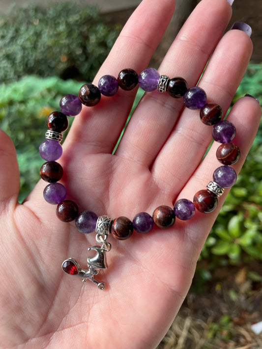 Witchy Crystal Bracelet with Amethyst & Red Tigers Eye