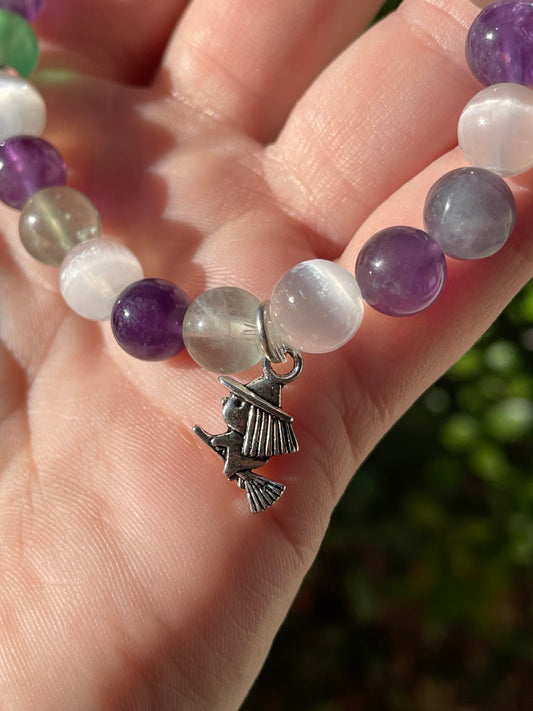 Witchy Intuition Boosting Crystal Charm Bracelet with Amethyst, Fluorite, & Selenite
