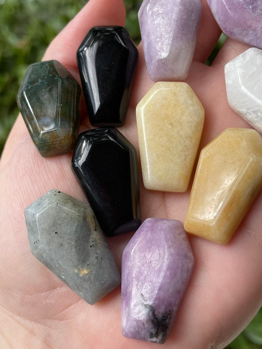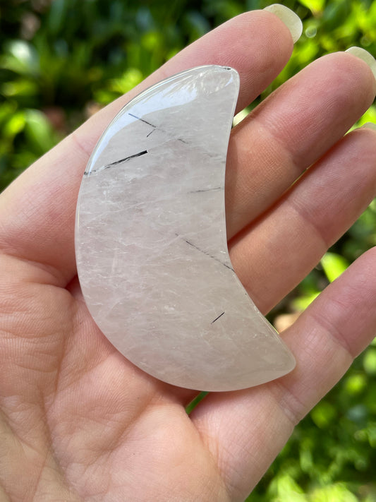 Black Tourmaline in Quartz Crescent Moon Carvings
