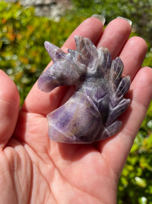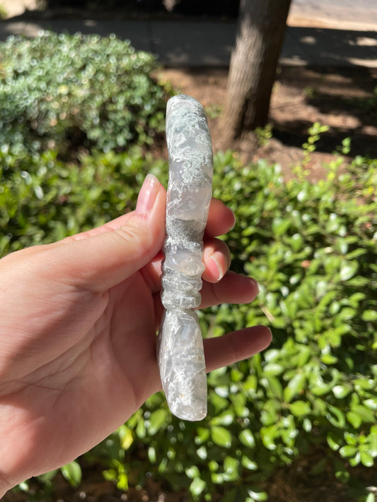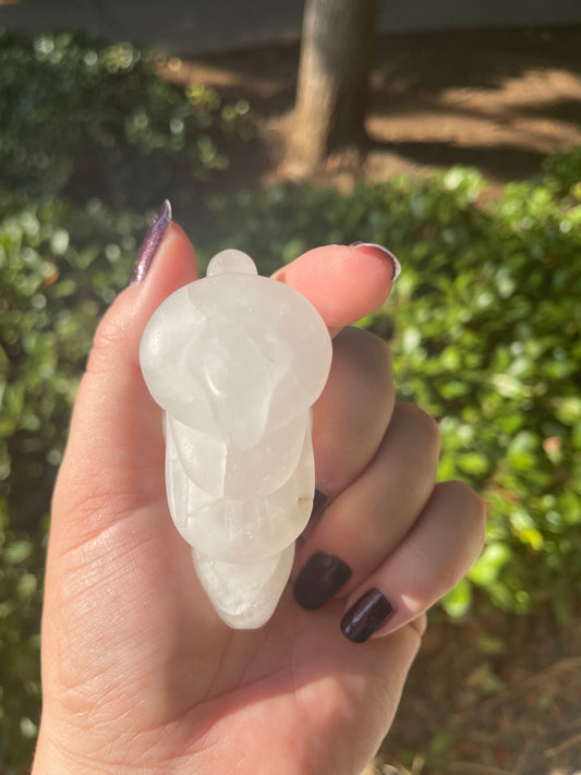 4” Satin Spar Selenite Unicorn Horn Spiral Tower Carving