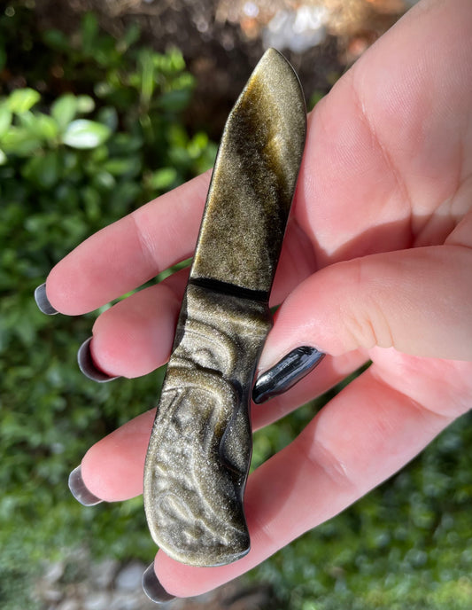 3” Flashy Golden Sheen Obsidian Crystal Knife Carving