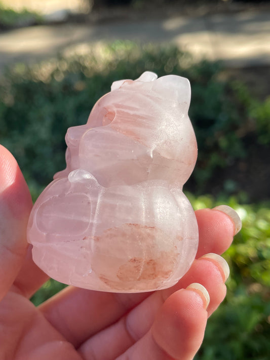Fire Quartz Crystal Kitty in a Pumpkin Halloween Carving