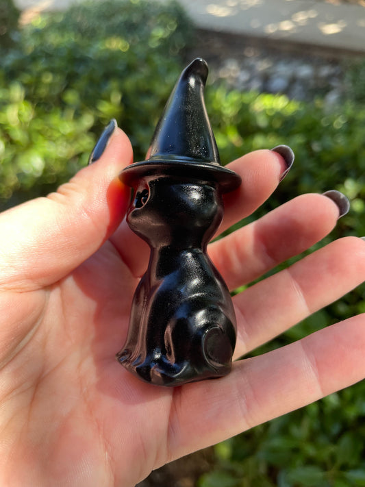 Sold outObsidian Witch Cat Crystal Carving
