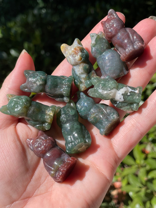 Moss Agate Cat Carvings