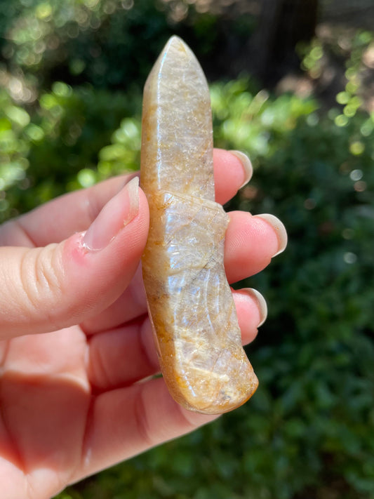 Moonstone with Golden Healer Crystal Knife Carving