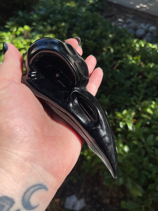 Large Obsidian Raven Skull Crystal Carving