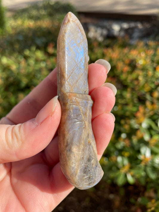Moonstone with Sunstone Crystal Knife Carving