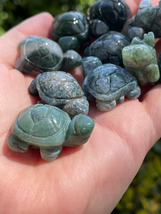 Moss Agate Turtle Carvings