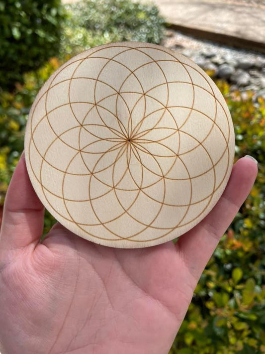 4” Chakra Flower of Life Wooden Crystal Grid Board