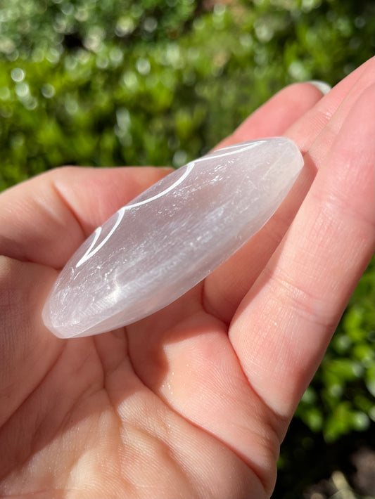 Moon Phase Satin Spar Selenite Crystal Palm Stone