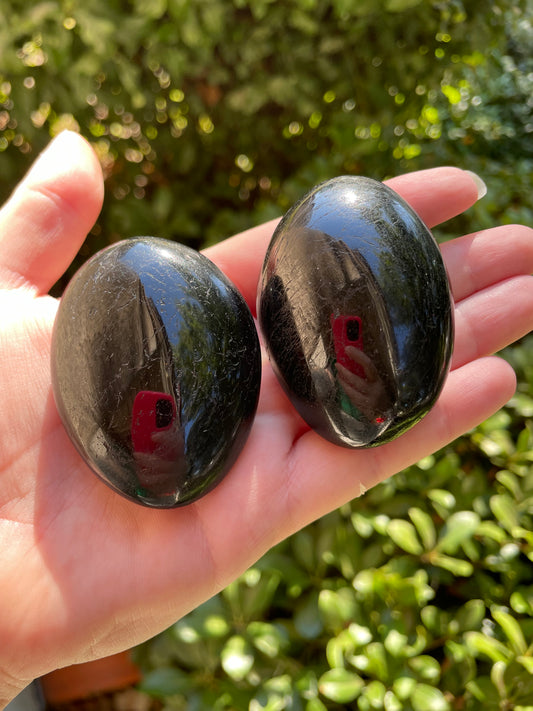 Sold outBlack Tourmaline Crystal Palm Stones