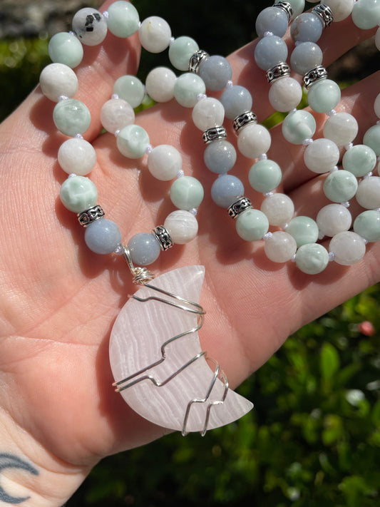 Divine Feminine Connection Crystal Necklace with Rose Quartz, Moonstone, Amethyst, and Aquamarine