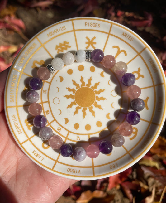 Self-Love Divine Feminine Heart Bracelet with Amethyst, Raspberry Aventurine, Unicorn Stone, & Moonstone
