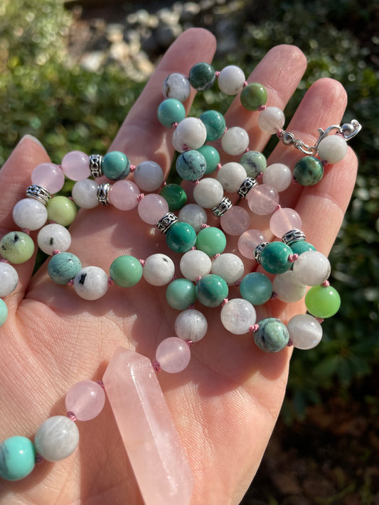 Self-Love & Emotional Regulation Crystal Talisman Necklace with Moonstone, Rose Quartz, and Chrysoprase