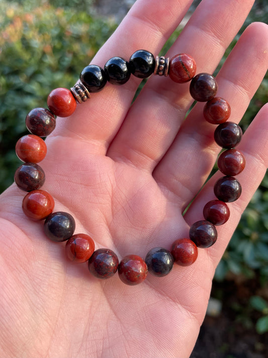 Root Chakra Balancing Crystal Bracelet with Red Jasper, Black Tourmaline, Garnet, & Red Brecciated Jasper