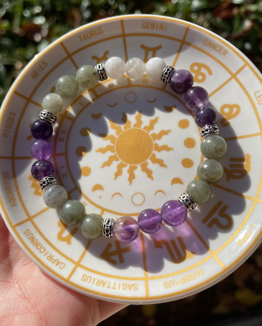 Transformation and Spiritual Growth Crystals Bracelet with Labradorite, Amethsyt, and Moonstone