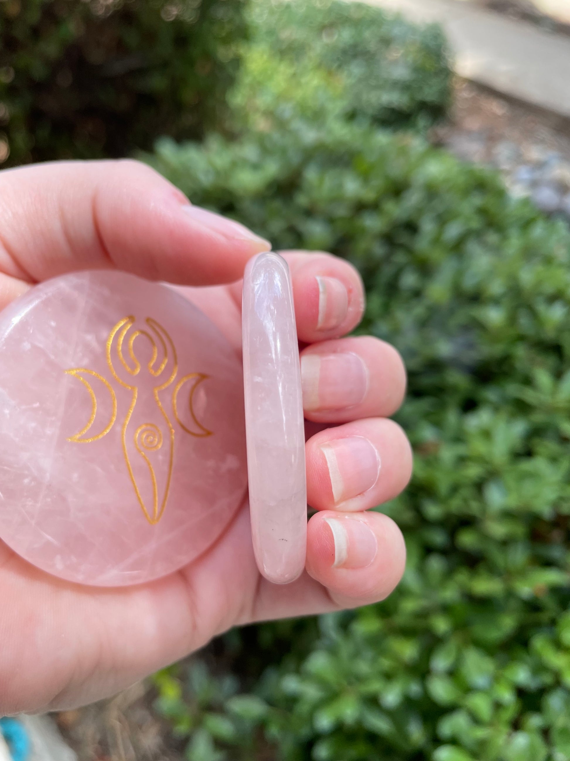 Rose Quartz Crystal Goddess Etched Worry Stone Disc